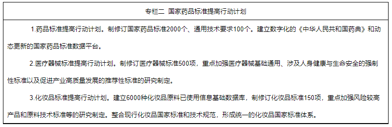 1.持續(xù)推進標準體系建設。繼續(xù)開展國家藥品標準提高行動計劃。編制2025年版《中華人民共和國藥典》。加強標準的國際協(xié)調,牽頭中藥國際標準制定,化學藥品標準達到國際先進水平,生物制品標準與國際水平保持同步,藥用輔料和藥包材標準緊跟國際標準。加強藥品標準技術支撐體系建設,提升藥品標準研究能力。優(yōu)化醫(yī)療器械標準體系,鼓勵新興技術領域推薦性標準制定,加快與國際標準同步立項,提升國內外標準一致性。完善化妝品標準技術支撐體系,健全標準制修訂工作機制。