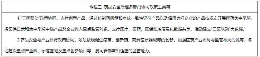 5.強化多部門治理協(xié)同。加快推進“三醫(yī)聯(lián)動”改革。藥品監(jiān)管、公安、工信、衛(wèi)生健康、醫(yī)保、發(fā)展改革、財政、科技等部門加強資源共享和政策協(xié)調,建立藥品安全治理多部門協(xié)同政策工具箱。發(fā)揮藥學科技社團組織、新聞媒體作用,加大科普宣傳力度,舉辦全國安全用藥月和醫(yī)療器械、化妝品安全科普宣傳周等品牌活動,提升全民安全用藥用械用妝科學素養(yǎng)。進一步完善有獎舉報制度,暢通投訴舉報渠道,充分發(fā)揮12315熱線和全國12315平臺作用。將藥品安全信用狀況依法記入企業(yè)和個人信用記錄,納入全國信用信息共享平臺,將嚴重違法失信企業(yè)和個人列入市場監(jiān)督管理嚴重違法失信名單,依法依規(guī)實施跨行業(yè)、跨領域、跨部門失信聯(lián)合懲戒。