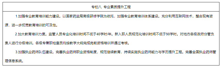 5.全面提升監(jiān)管隊伍專業(yè)素質。實施專業(yè)素質提升工程,大力開展專業(yè)能力教育培訓,有計劃地開展各級負責藥品監(jiān)管的部門負責人領導能力培訓。加強全國藥品監(jiān)管隊伍專業(yè)化建設,嚴把入口關,穩(wěn)步提升監(jiān)管隊伍專業(yè)化水平。